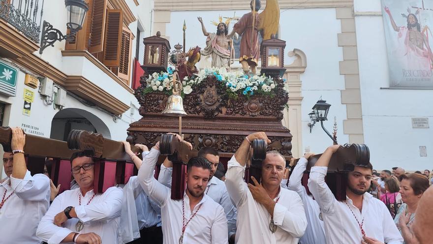 El principal acto religioso de la cofradía es la procesión que el Domingo de Resurrección recorre el itinerario oficial. El hábito penitencial y de las insignias de la cofradía son «las túnicas con botones, capirucho de cincuenta centímetros de alto, de color grana y capa y fajín color crema claro, guantes blancos y calzado negro; las insignias que llevará la cofradía a los actos religiosos a que concurra será estandarte, con los colores blanco, en el centro de la Imagen del Señor, pintada al óleo, al que acompañará dos faroles, un guion por los menos con idénticos colores y el cetro de la autoridad que llevará el hermano presidente».