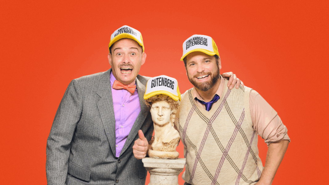 G.T.: No es serio, son dos personajes como si fueran los 3 chiflados, agarran un nombre porque se les ocurre escribir sobre el primer libro y de ahí derivan a la imprenta y luego a su inventor Gutenberg. Van hacia allá pero mezclan muchas cosas ,no se baja información ni data, es una comedia disparatada hablando sobre alguien que googlearon.