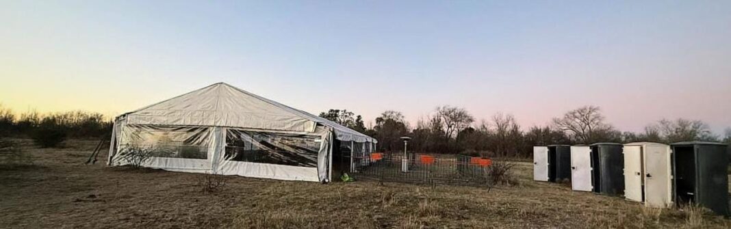 El lugar estaba armado con carpas, pantallas gigantes, baños químicos y más de 100 vehículos estacionados.