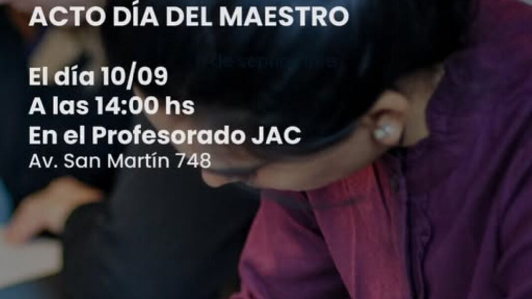 El acto en conmemoración a los educadores, se realizará el próximo miércoles 10 de septiembre a las 14 hs en el Profesorado JAC (Av. San Martín 748).