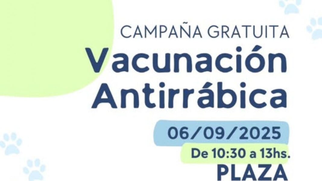 San Roque. La Comuna de San Roque anunció el inicio de una nueva campaña gratuita de vacunación antirrábica destinada a perros y gatos. La primera jornada se llevará a cabo el sábado 6 de septiembre de 2025, en la Plaza Joaquín, en el horario de 10:30 a 13:00 horas.