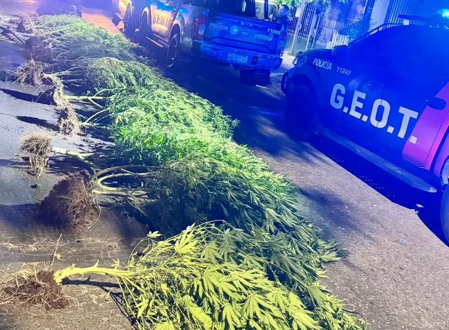 La intervención se inició a partir de un llamado de alerta por la activación de una alarma en el sector. Al llegar al lugar, los efectivos observaron desde el exterior del inmueble unas 40 plantas de marihuana visibles en el patio de una propiedad lindera, lo que motivó una actuación inmediata.