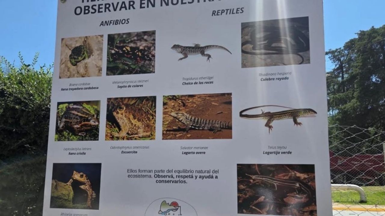 En esta etapa, los carteles están dedicados a la herpetofauna, con información sobre reptiles y anfibios presentes en la zona, especies que cumplen un rol clave en el equilibrio del ecosistema y que forman parte de la protección ambiental que debe preservarse.