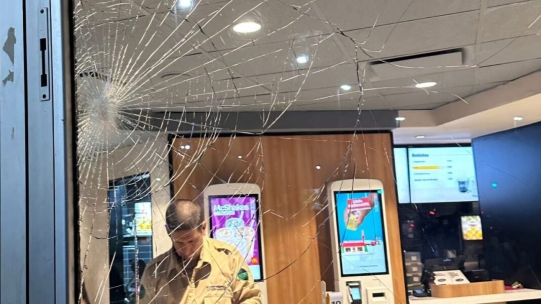 Según el registro de las cámaras de seguridad el joven participaba de una riña con otros sujetos cuando en un momento determinado tomó una piedra y la arrojó contra el ventanal del local de comidas McDonald’s situado en la intersección de Avenida Ambrosio Olmos y Boulevard Chacabuco. El impacto provocó la rotura de uno de los cristales del comercio.