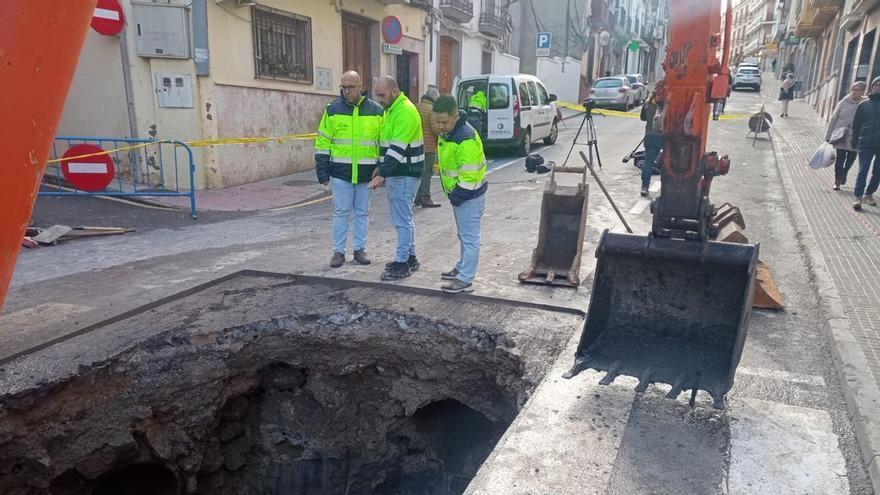 Según el alcalde, David Ruiz, los servicios municipales, ante los primeros síntomas de hundimiento de la calzada procedieron a la localización exacta del problema. “Al realizar los trabajos de levantamiento del asfalto hemos descubierto el gran socavón que había debajo”, ha añadido Ruiz.