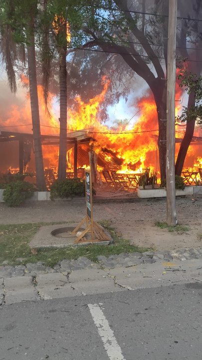 Las pérdidas son totales a nivel estructural y mobiliario, con el colapso del techo de chapas con tirantes de madera de la galería frontal y patio de comidas externo.