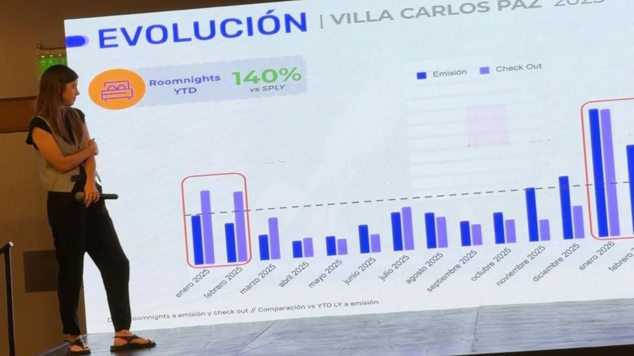 Uno de los datos más destacados fue el fuerte crecimiento que registra Villa Carlos Paz en la plataforma: la ciudad encabeza el aumento de la demanda turística en Córdoba con un incremento del 140% en noches de alojamiento en lo que va del año en comparación con 2025. Este desempeño la posiciona como uno de los destinos con mayor expansión dentro de la provincia.
