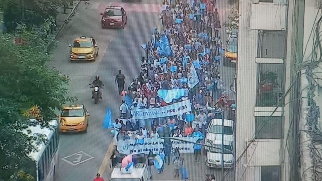 Una importante concentración se desarrolla en estas horas en el centro de la ciudad de Córdoba, lo que motivó la implementación de un operativo de seguridad y cortes parciales en el tránsito.